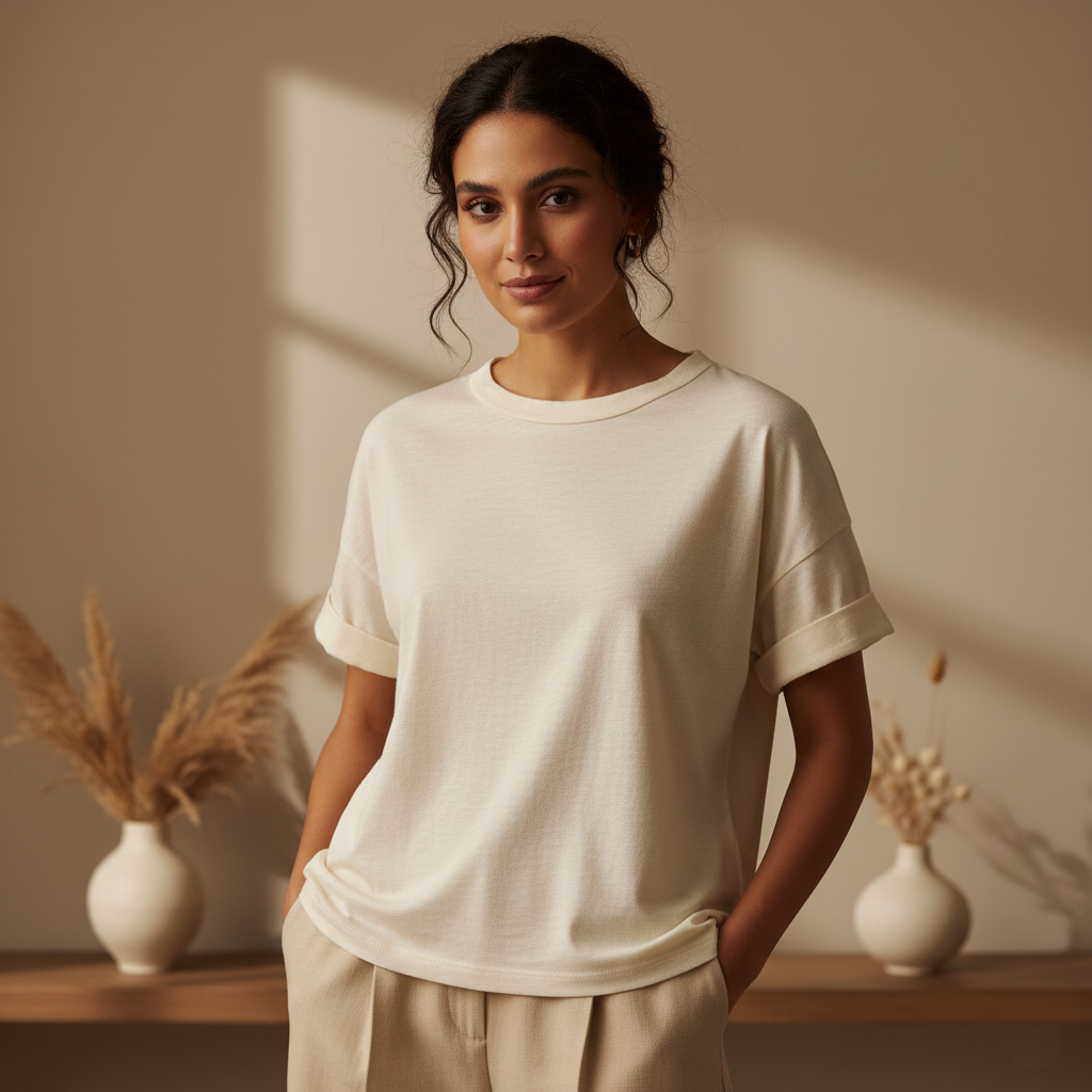 تیشرت یکی از اصلیترین و پرکاربردترین لباسهایی است که در کمد لباس هر خانمی جای دارد. این قطعه ساده اما همهکاره میتواند برای موقعیتهای مختلف – از پوشش روزمره تا مهمانیهای نیمهرسمی – مناسب باشد. اما انتخاب تیشرت مناسب به سادگی که به نظر میرسد نیست. باید به جنس پارچه، سایز، مدل، رنگ و حتی نحوه ست کردن آن توجه داشته باشید تا سرمایهگذاری خوبی انجام دهید.